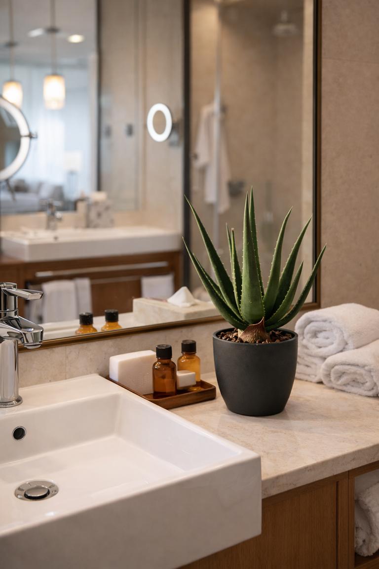 Unsere künstliche Aloe Vera-Pflanze ist ein vielseitiges Dekorationsstück. Ob im Wohnzimmer, Büro, Badezimmer oder auf der Terrasse (geschützt) – sie fügt sich harmonisch in jede Umgebung ein. Ihr robustes Material macht sie zudem ideal für Bereiche, in denen echte Pflanzen schwer gedeihen.