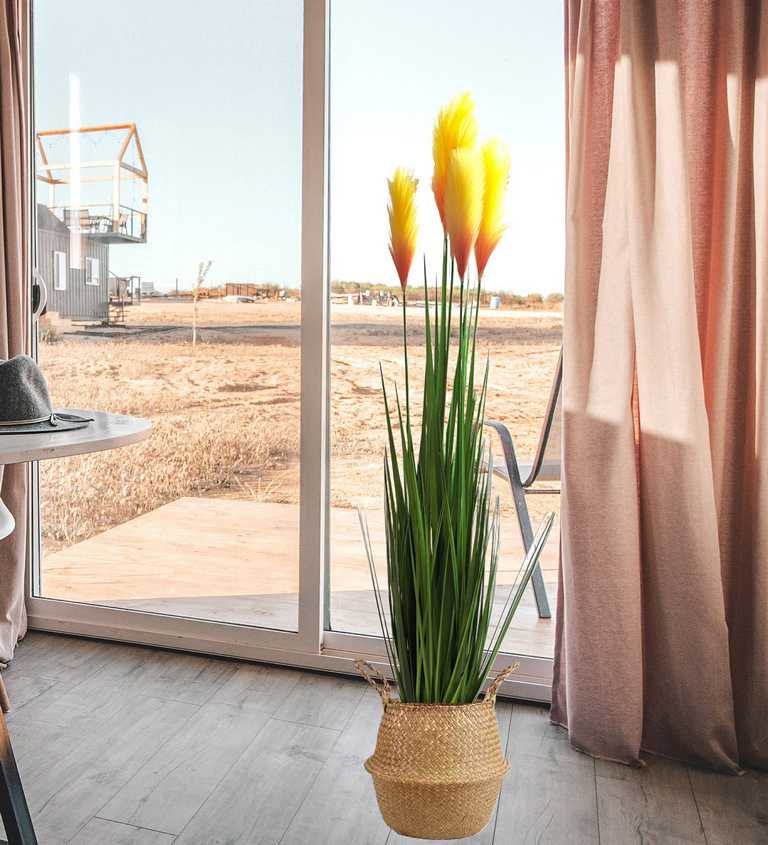 Unsere künstliche Gras-Pflanze ist ein vielseitiges Dekorationsstück. Ob im Wohnzimmer, Büro, Badezimmer oder auf der Terrasse (geschützt) – sie fügt sich harmonisch in jede Umgebung ein. Ihr robustes Material macht sie zudem ideal für Bereiche, in denen echte Pflanzen schwer gedeihen.