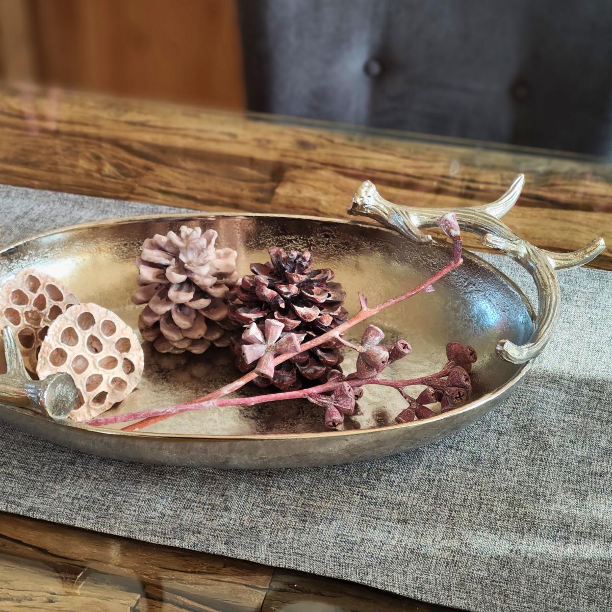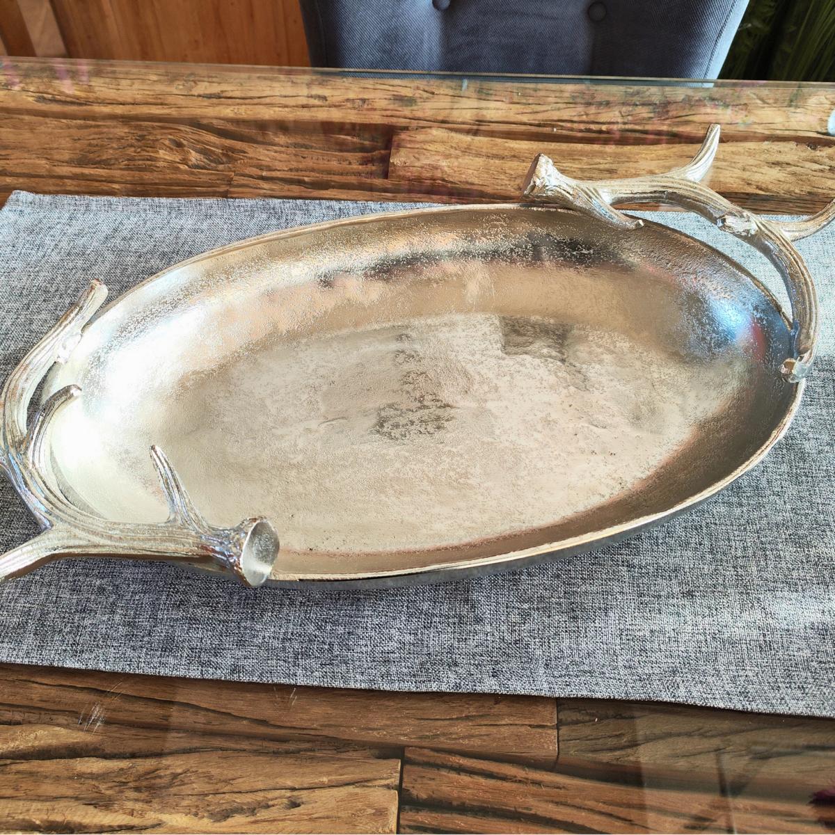 Produktinformationen "Schale mit Geweih Silber Aluminium 56 cm"