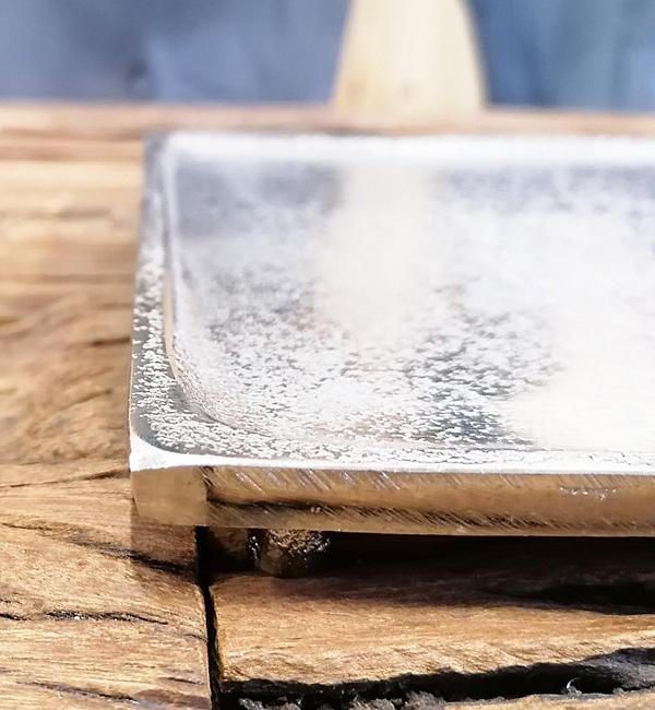 Sehr edel wirkender Dekoteller aus schwerem Aluminium. Der Werkstoff Aluminium ist äußerst robust, somit ist dieser Dekoteller ein Deko-Objekt für die Ewigkeit. Der exklusive Teller lässt sich wunderbar in die Dekoration deiner Wohnung integrieren. Er lässt sich sehr gut mit Kerzen, Flaschen oder Gläsern bestücken. Der silberfarbene Dekoteller lässt sich auch optimal in der Gastronomie einsetzen. Gerade die Farbe Silber ist absolut zeitlos und wirkt sehr luxuriös. Der Dekoteller auf vier kleinen Standfüßen, besitzt eine Raw-Oberfläche. Das heißt, dass der Artikel nach dem Guss nicht mehr poliert wurde. Der Dekoteller in Silber besitzt daher eine einzigartige Oberflächenstruktur. Jeder der silberfarbenen Teller ist somit ein Unikat.