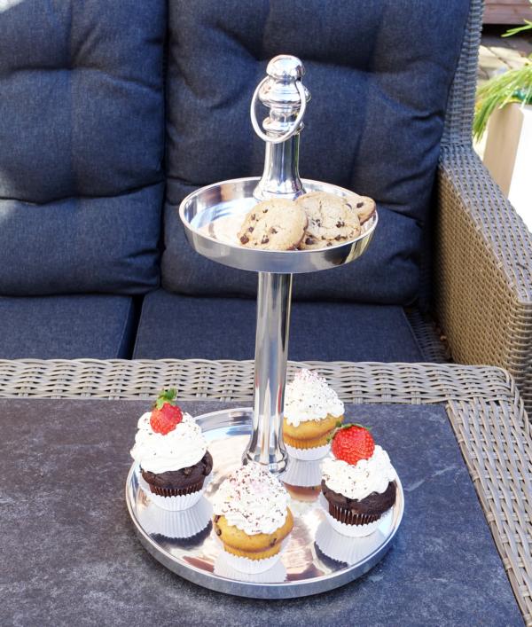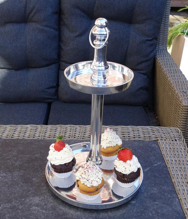 Etagere aus Aluminium zweistöckig mit elegantem Griff