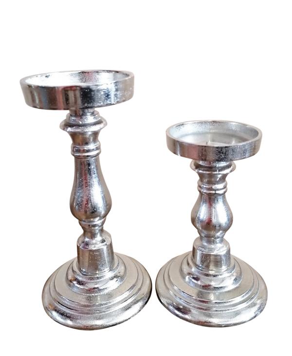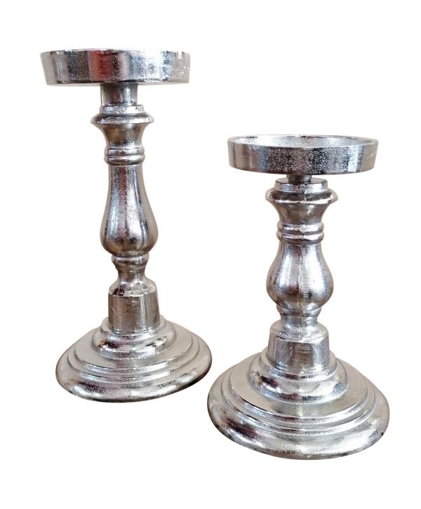 Kerzenständer Silber 2er Set für Stumpenkerzen