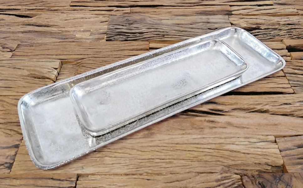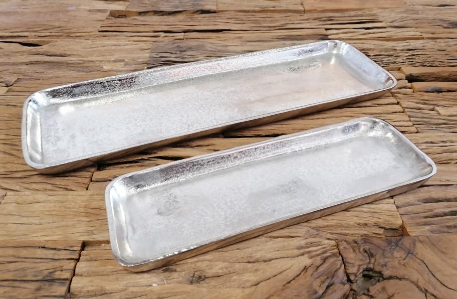 Elegante Schale in eckiger Form für dein Zuhause. Die Schale in der Farbe Silber lässt sich wunderbar in deine Wohnung und die Einrichtung integrieren. Gerade die Farbe Silber lässt sich nahezu in jeden Wohnstil integrieren und ist absolut zeitlos. Zusätzlich versprüht die Farbe Silber auch immer einen Hauch von Luxus und Eleganz. Die Deko-Schale lässt sich gut als Schlüsselschale im Eingangsbereich, Aufbewahrungsschale, oder als Dekoschale nutzen. Auch im Badezimmer kann die Schale wunderschön mit Sand und Muscheln dekoriert werden. Einsetzbar ist die Schale nahezu in jedem Raum deines Zuhauses. Bei der Dekoration kannst du deiner Phantasie freien Lauf lassen. Natürlich eignet sich die eckige Schale auch als Geschenk für deine Liebsten. Die Schale wurde zu 100 % von Hand gefertigt und aus Aluminium (Metall) hergestellt. Jede der Schalen ist somit ein Unikat.