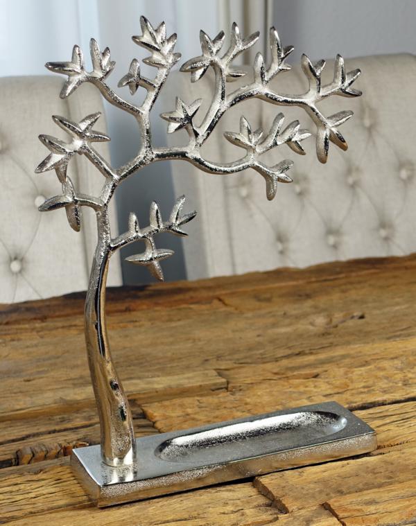 Der silberfarbene Schmuckbaum ist eine gelungene Alternative zum gängigen Schmuckkästchen. Im Gegensatz zum Schmuckkasten, hast du beim Schmuckbaum deinen Schmuckbaum jederzeit griffbereit. Bei einem Schmuckkästchen ist auch immer die Gefahr, dass deine Lieblings-Schmuckstücke in Vergessenheit geraten. Das kann dir bei dem schweren Schmuckbaum aus Aluminium (Metall) nicht passieren, denn dein Schmuck ist immer präsent.