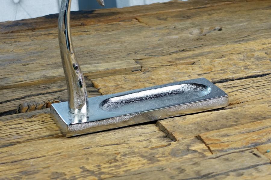 Schmuckbaum aus Aluminium in 2 verschiedenen Größen von Michael Noll Massive und hochwertige Qualität 100 % Handarbeit Material: Aluminium Maße: 25x8,5x31 cm (MN-DE-5033) oder 28x8,5x37,5 cm (MN-DE-5034) Wunderschöner Schmuckbaum aus Aluminium in der Farbe Silber. Der geschwungene Schmuckständer mit einer Ablage ist der optimale Aufbewahrungsort für deine Kostbarkeiten. Ein wirklich tolles Design, welches man nicht oft zu sehen bekommt. Der Stamm des Baumes ist geschwungen und die Äste hängen über der Ablage. Die Ablage unterhalb des Baumes eignet sich hervorragend für kleinere Schmuckstücke, wie zum Beispiel Ringe und Ohrringe. An den Ästen selber ist genügend Platz für deine Halsketten und Armbändern vorhanden. Der silberfarbene Schmuckbaum ist eine gelungene Alternative zum gängigen Schmuckkästchen. Im Gegensatz zum Schmuckkasten, hast du beim Schmuckbaum deinen Schmuckbaum jederzeit griffbereit. Bei einem Schmuckkästchen ist auch immer die Gefahr, dass deine Lieblings-Schmuckstücke in Vergessenheit geraten. Das kann dir bei dem schweren Schmuckbaum aus Aluminium (Metall) nicht passieren, denn dein Schmuck ist immer präsent. Das Material Aluminium und die Farbe Silber machen den Schmuckbaum extrem langlebig. Das Material Aluminium ist sehr robust und die Farbe Silber absolut zeitlos. So kannst du dich noch viele Jahre an deinem Schmuckständer erfreuen. Außerdem lässt sich die Farbe Silber mit nahezu jedem Wohnstil kombinieren. Er passt also in jedes Zuhause. Auch als Geschenk eignet sich der Schmuckbaum hervorragend, denn jede Frau besitzt Schmuck. Auf der Unterseite ist ein Schutz gegen Kratzer angebracht, so dass du dir keine Sorgen um deine Kommode, oder deinen Schminktisch machen musst. Der Schmuckbaum mit der Ablage ist eine wirklich tolle Alternative zum Schmuckkästchen. Er ist nicht nur eine praktische Aufbewahrungshilfe, sondern auch ein tolles Deko-Objekt und Wohnaccessoire. Die Lieferung erfolgt exklusive Dekoration.
