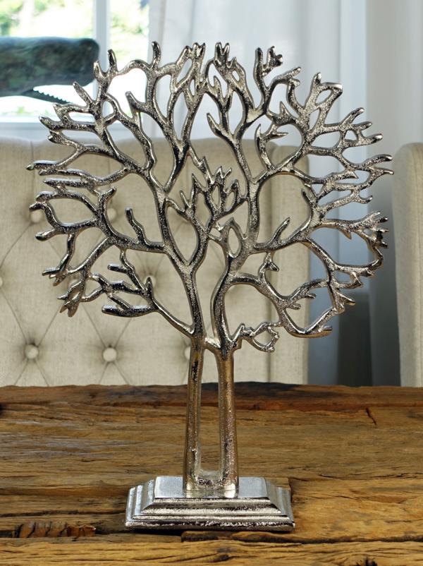 Der Schmuckbaum aus Aluminium ist eine gelungene Alternative zum Schmuckkästchen. Viele Jahre wurde Schmuck gut behütet im Schmuckkasten aufbewahrt. Mit dem Schmuckbaum in der Farbe Silber gibt es eine wesentlich übersichtlichere und dekorativere Variante. Der Schmuck wird nun nicht mehr in einer Schublade verstaut, sondern du kannst dich jeden Tag aufs neu an ihm erfreuen, da dir der Schmuck jederzeit ins Auge fällt. Der dekorative Baum ist der perfekte Aufbewahrungshelfer für deine Kostbarkeiten und deinen Schmuck. Dadurch, dass dein Schmuck nicht jeden Tag im Schmuckasten versteckt ist und dir der Schmuck-Baum eine gute Übersicht bietet, wirst du deinen Schmuck wahrscheinlich noch häufiger tragen.