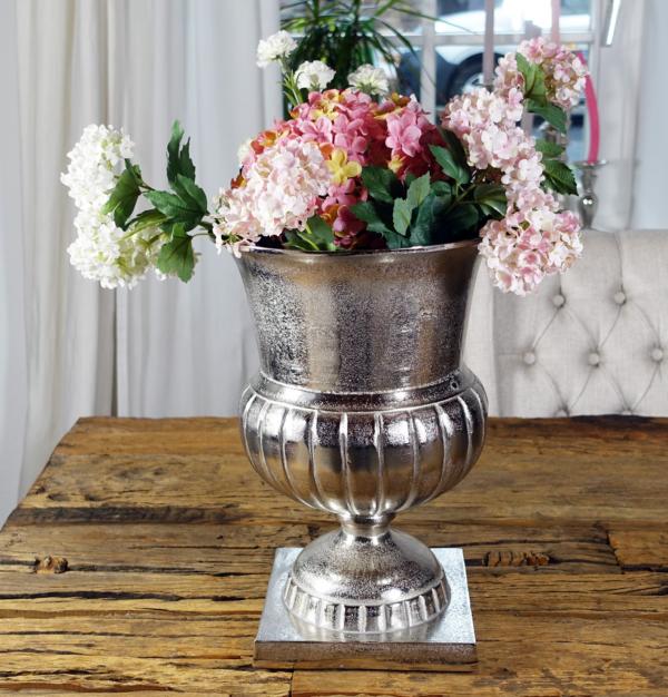 Wenn du auf der Suche nach einem pompösen Deko-Objekt für deine Wohnräume bist, haben wir hier genau das Richtige für dich. Die elegante silberne Vase mit ihrem bauchigen Mittelstück bildet dank der hochwertigen Aluminium-Beschichtung einen glänzenden Hingucker. Ob ohne oder mit einer schmückenden Pflanze darin - diese Design Vase wird in jedem Fall zu einem edlen Eyecatcher.