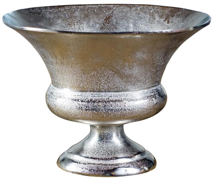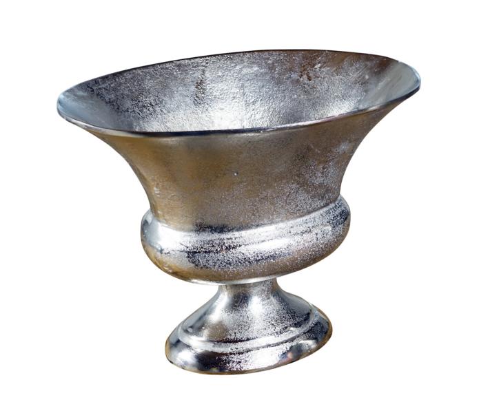 Diese exklusive Kelchvase ist von Hand gefertigt und aus hochwertigem Aluminium hergestellt. Ihre Größe beträgt großartige 38 cm. Die Vase verleiht durch ihre schönen Kurven ein tolles Flair. Die silberne Vase ist garantiert ein extravagantes Highlight in deinem Wohnbereich. Du kannst die Vase ganz individuell dekorieren. Auch ohne Dekoration sieht sie klasse aus. Als Geschenk eignet sie sich auch hervorragend. Die Vase ist nicht zum befüllen von Wasser und frischen Blumen geeignet.