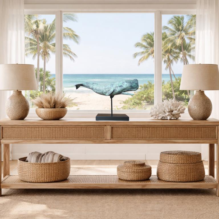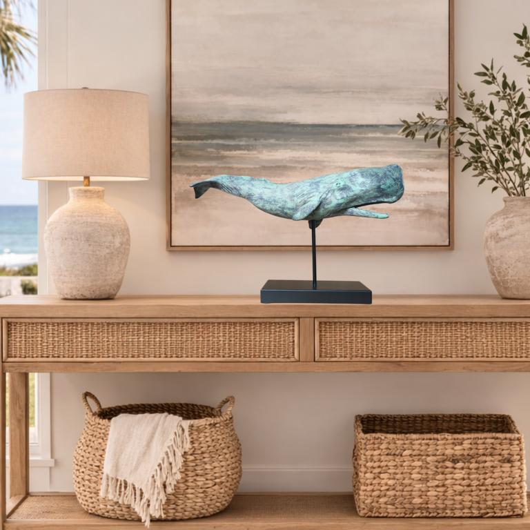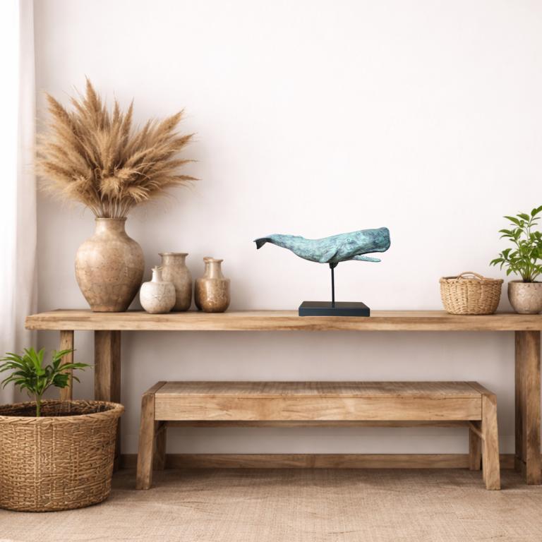 Mach deinen Wohnraum zu einem Ort, an dem du dich wie am Meer fühlst – mit unserem bezaubernden Wal auf Standfuß! Gönn dir das maritime Vergnügen und tauche ein in die Welt von entspannter Eleganz.