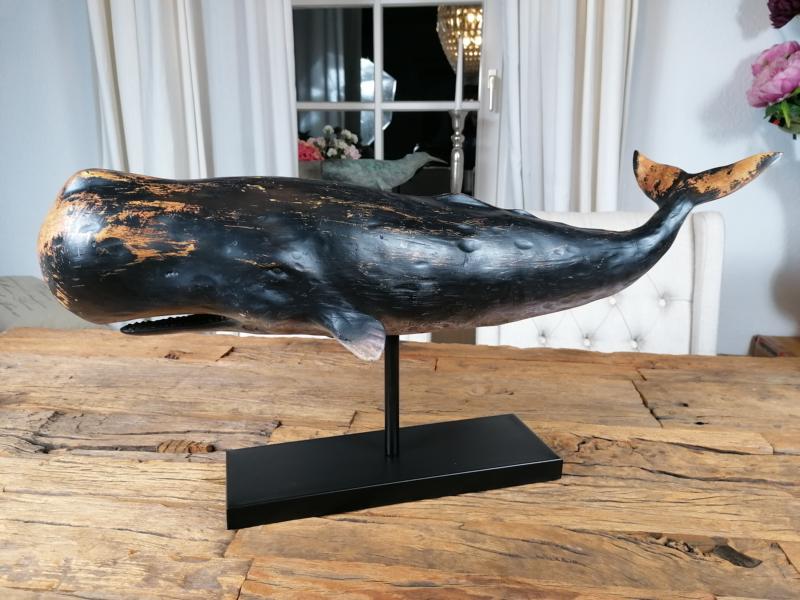 - Detailgetreue Walfigur auf Standfuß aus Metall